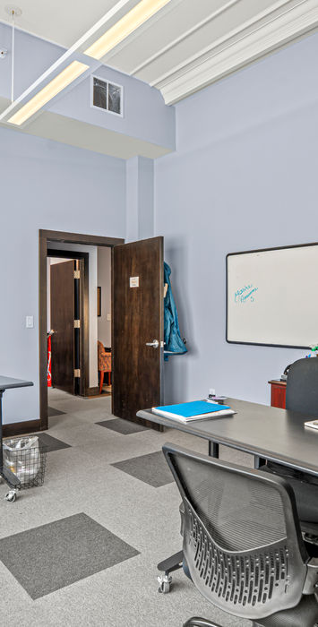 Abundant natural light pours in through the 12' tall floor-to-ceiling windows, creating an energetic, welcoming environment.
